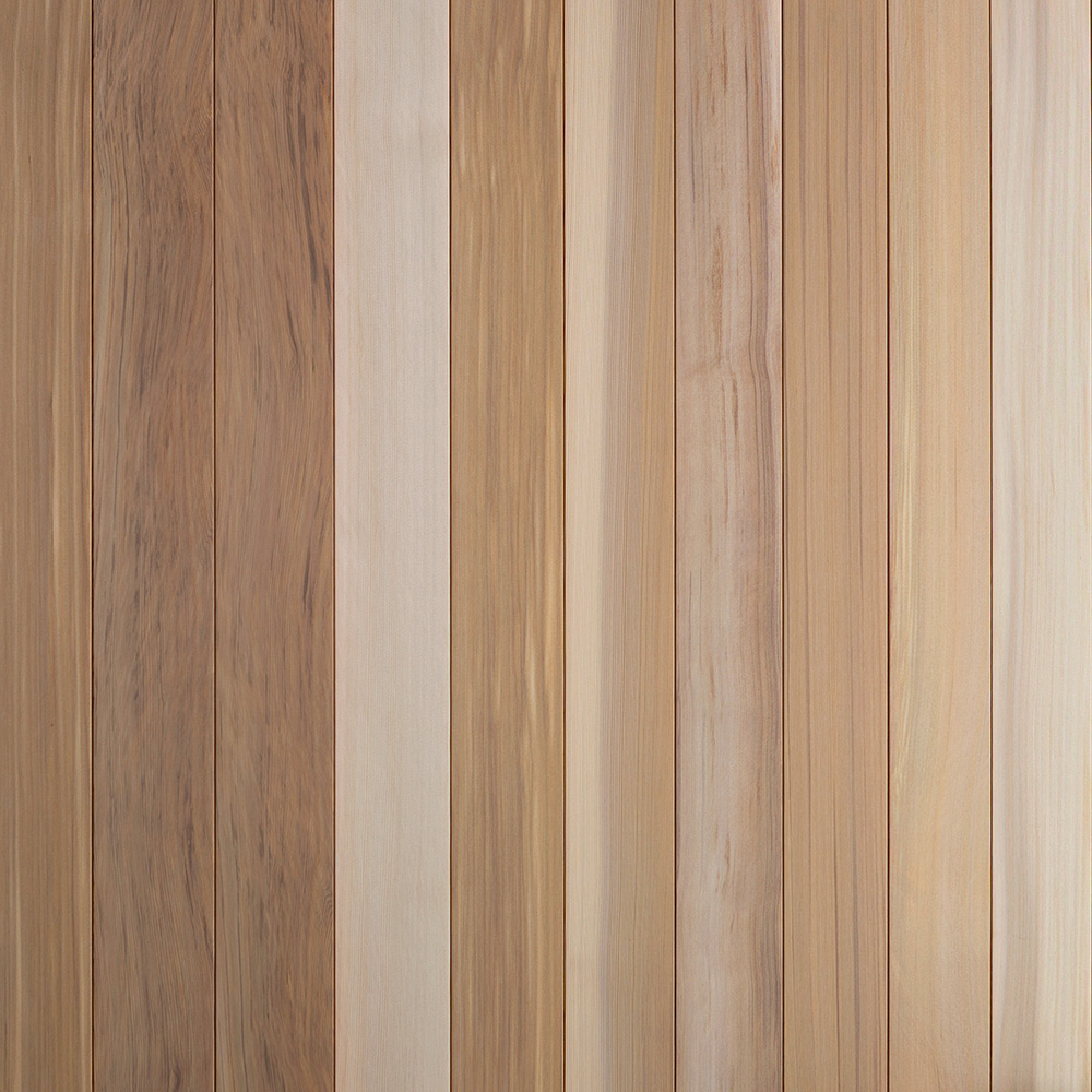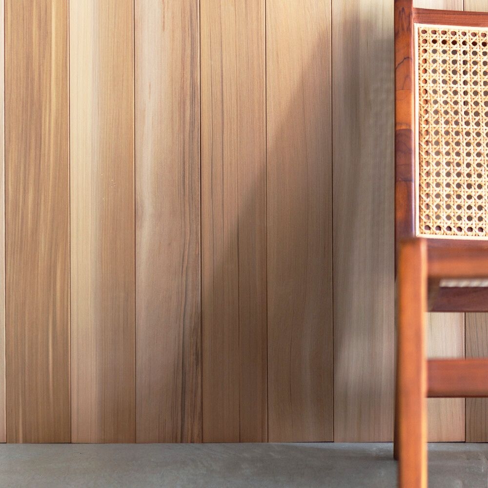 空間に豊かな陰影と素材感を与えるレッドシダー。深みのある赤褐色と繊細な木目が織りなす表情は、どんなデザインにも自然と溶け込みます。時間とともに色艶を変えながら、美しさを重ねる経年変化も魅力。軽量で加工性が高く、ディテールの仕上がりにもこだわることができます。アクセントウォールや天井に取り入れるだけで、空間に上質なリズムと温もりを添える、デザイナーに選ばれる壁材です。